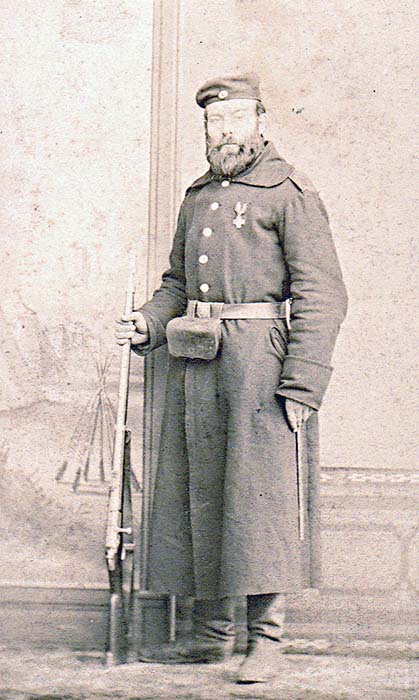 | Preußischer Infanterist in Amiens 1870/71 mit Chassepot-Gewehr. (Sammlung Jérome Lantz; Bildausschnitte können mit dem Mauszeiger vergrößert werden) |