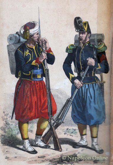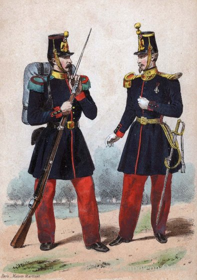 In der Bibliographie von Uniformserien Costumes Militaires - Catalogue des principales suites de costumes militaires francaise parues tant en France qu'à l'étranger (Paris 1900) wird eine Serie des Hauses Martinet nicht für 1856, jedoch für 1851 aufgeführt. Dort werden Tafeln mit nahezu gleichem Inhalt aufgelistet. Auf zwei Tafeln wird als Lithograf Godard in Paris angegeben.