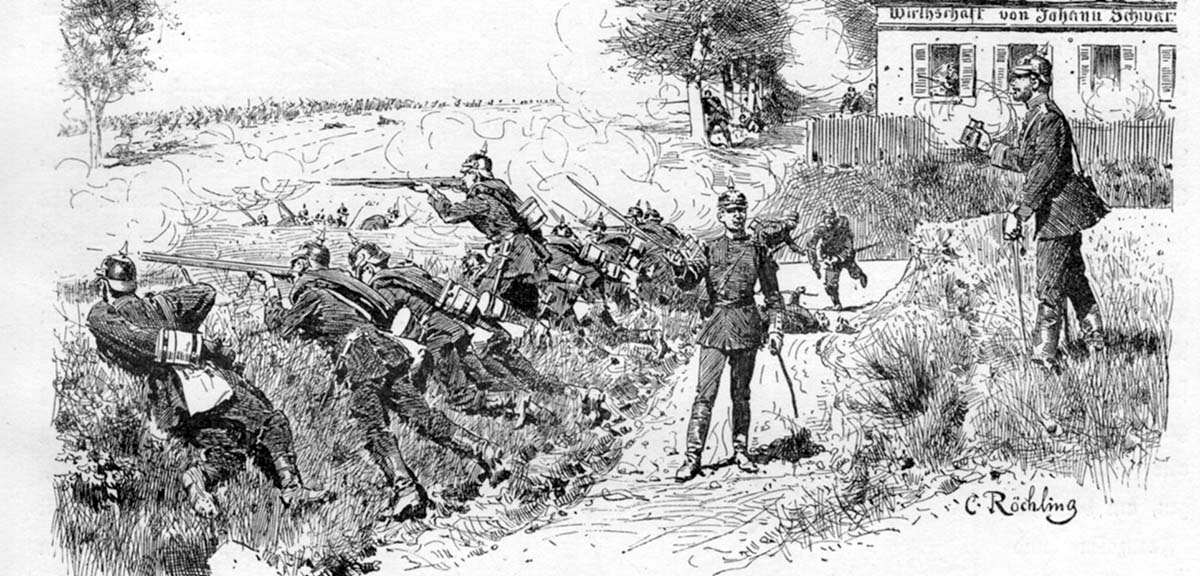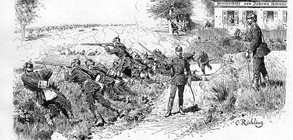 | Die 7. Kompanie des Infanterie-Regiments Nr. 40 verteidigt den Exerzierplatz in Saarbrücken (C. Röchling) |