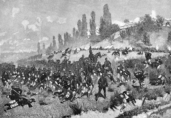 | Bayerische Truppen stürmen durch die Weinberge auf Weißenburg zu (L. Braun) |