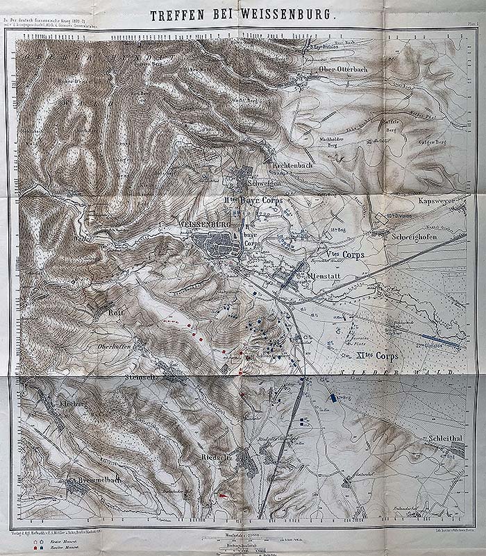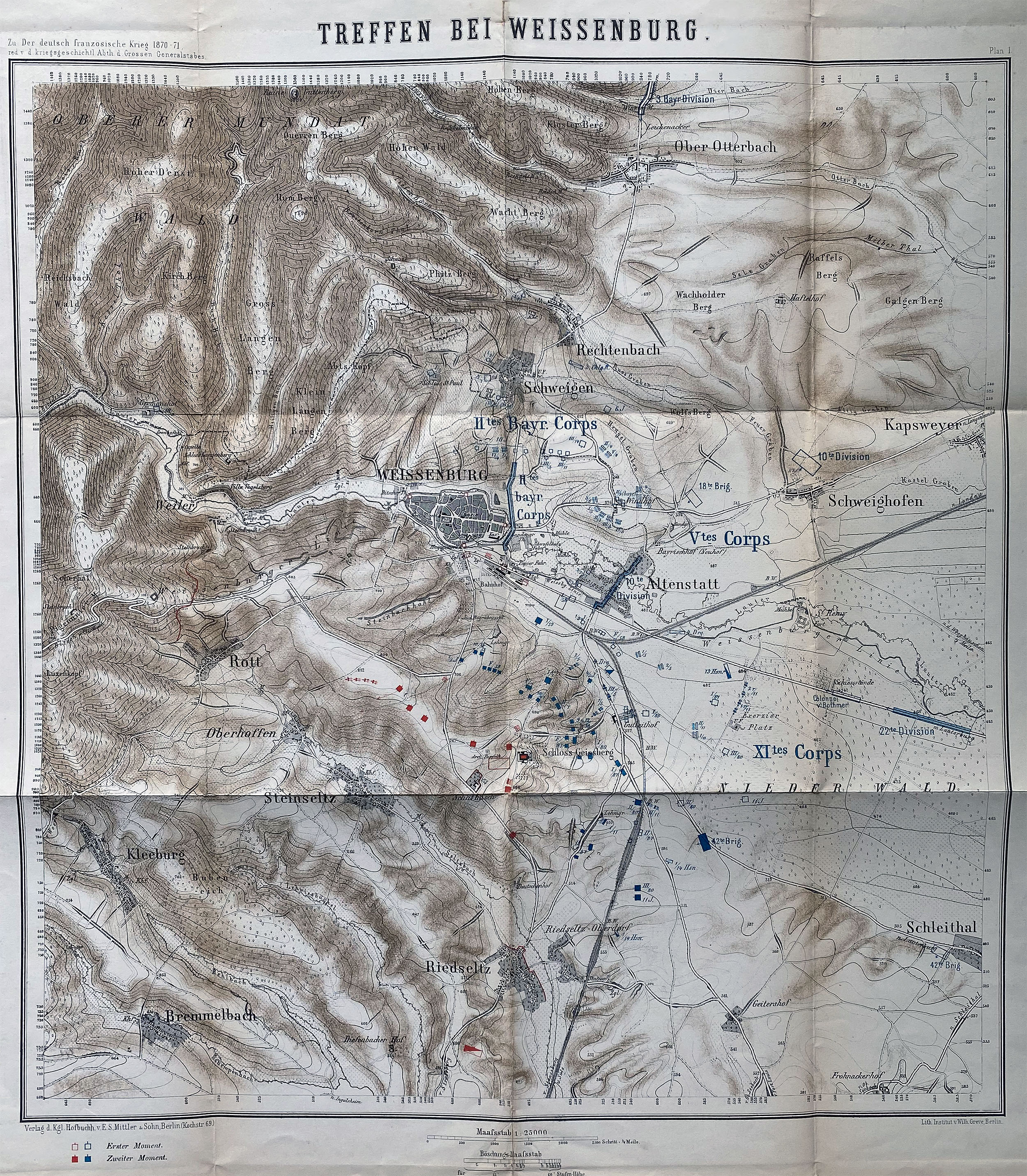 | Schlacht von Weißenburg am 4. August 1870 (aus dem Werk des Großen Generalstabes zum Krieg von 1870/71; in der Karte kann gezoomt werden) |
