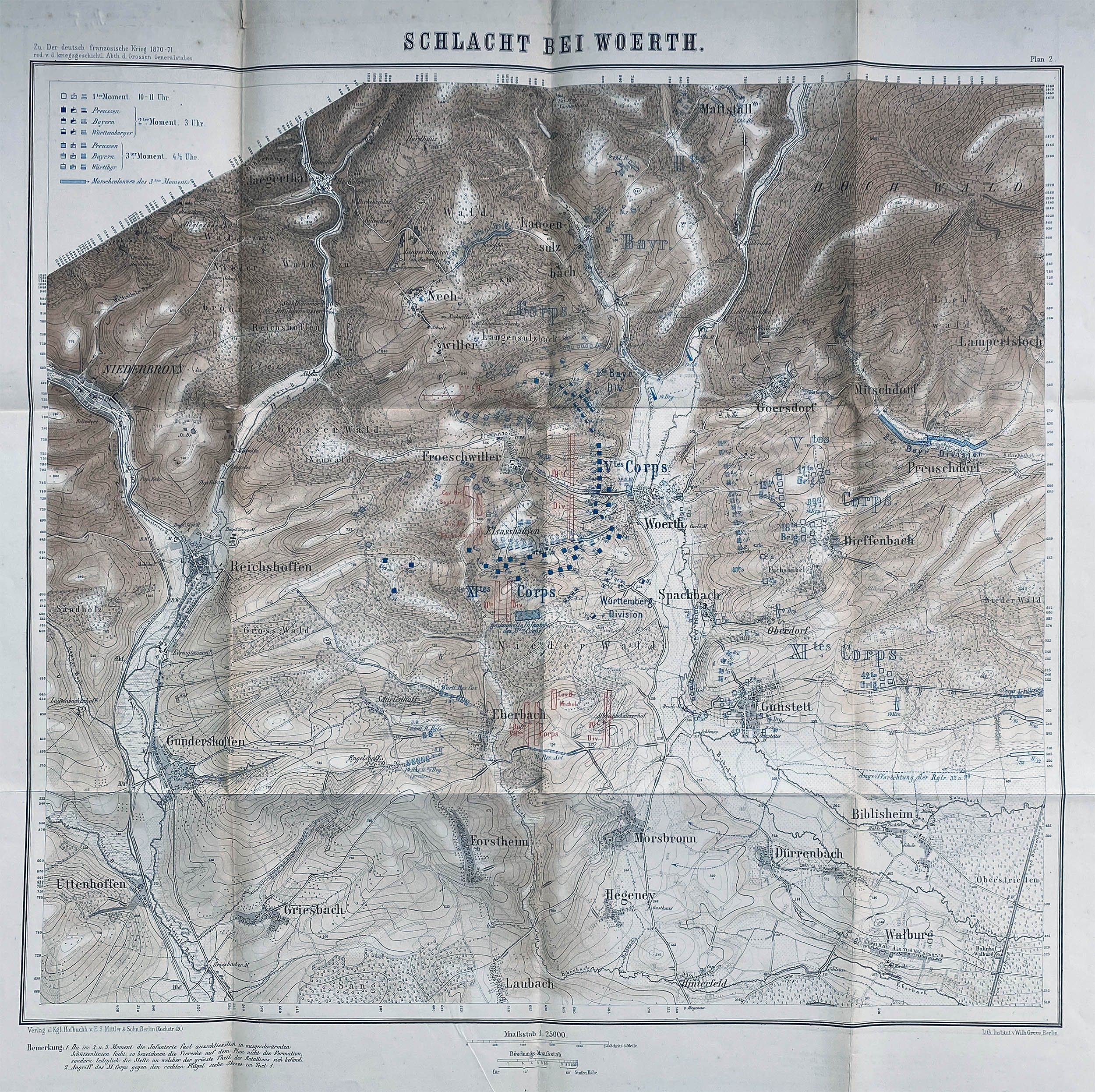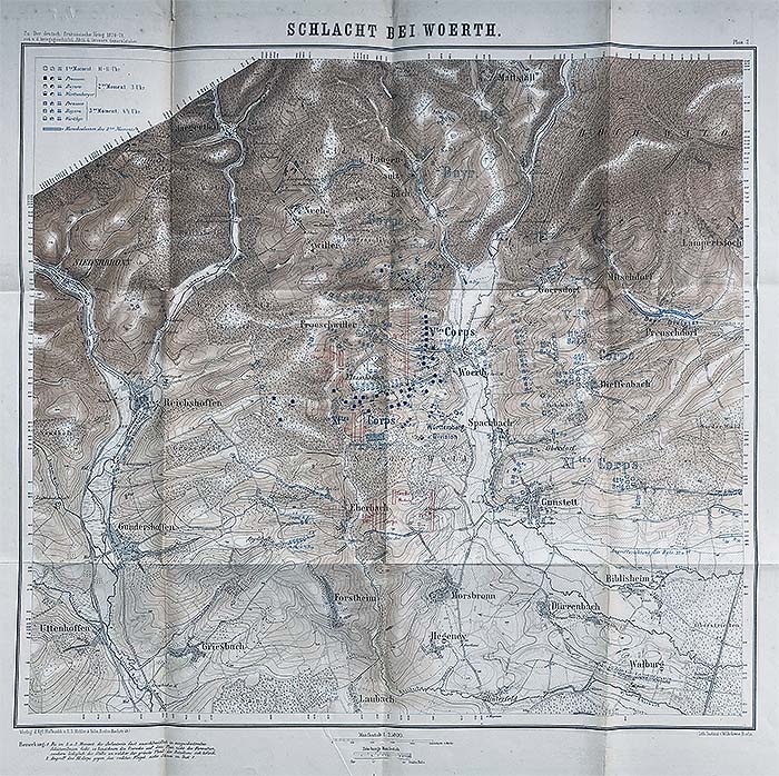 | Schlacht von Wörth am 6. August 1870 (aus dem Werk des Großen Generalstabes zum Krieg von 1870/71; in der Karte kann gezoomt werden) |